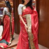 Dual-Tone Majesty: Pink and Teal Silk Saree