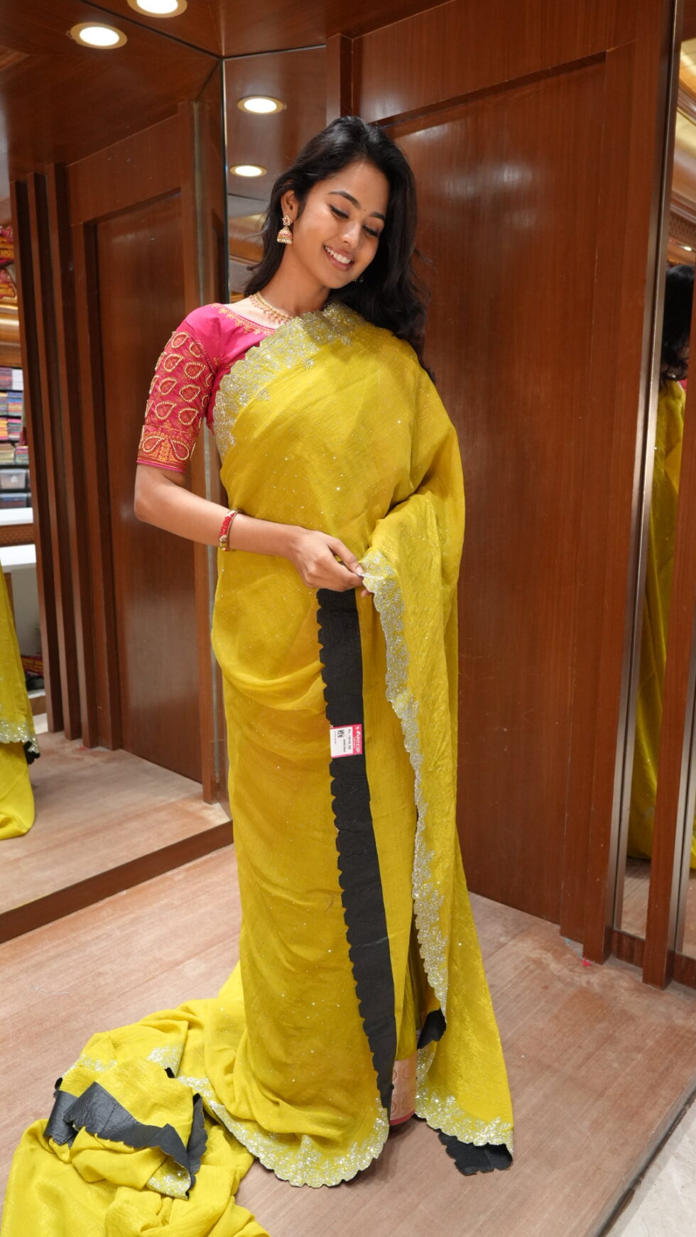 Festive Radiance: Lime Yellow Silk Saree with Scalloped Border