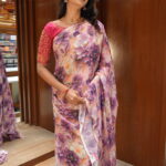 Lavender Blossom: Digital Floral Printed Georgette Saree