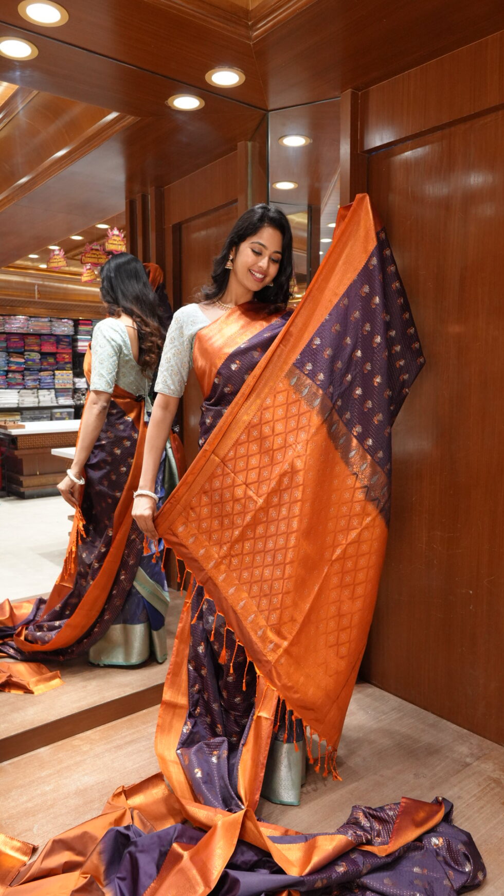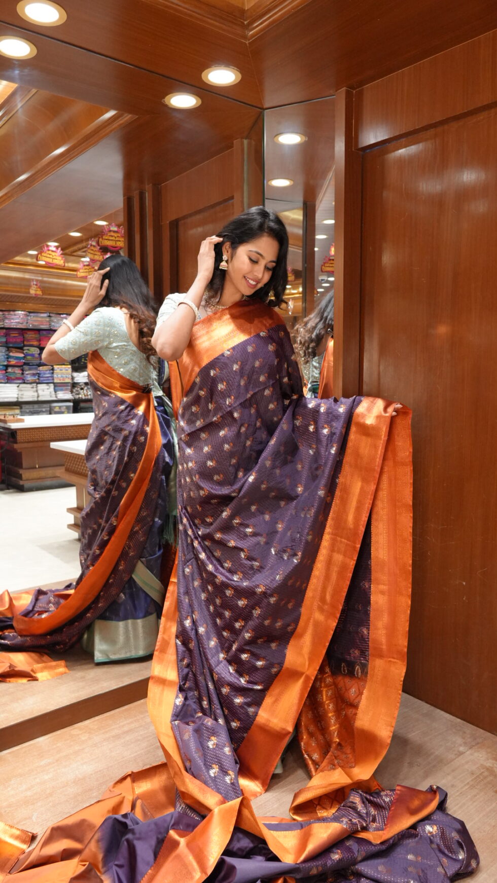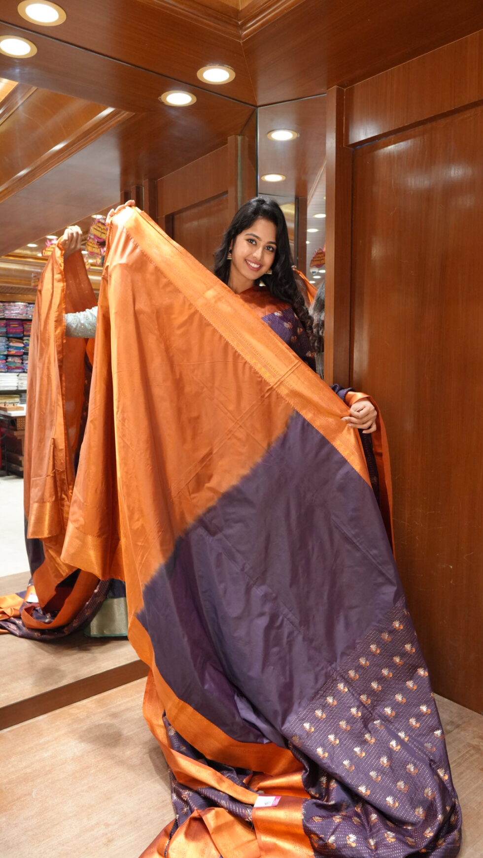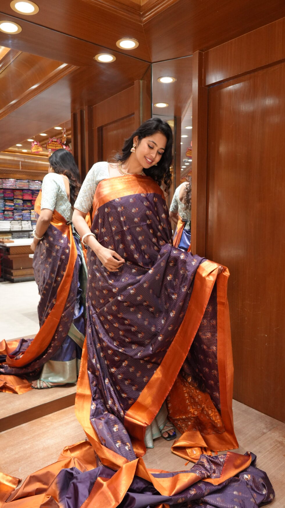 Mystical Bloom: Deep Plum and Copper Silk Saree