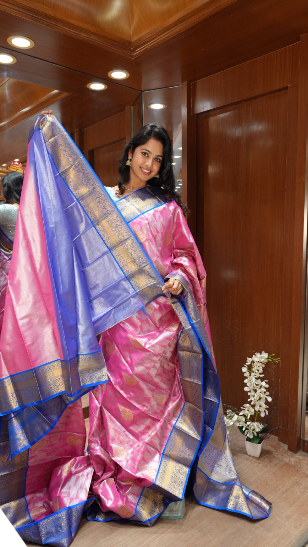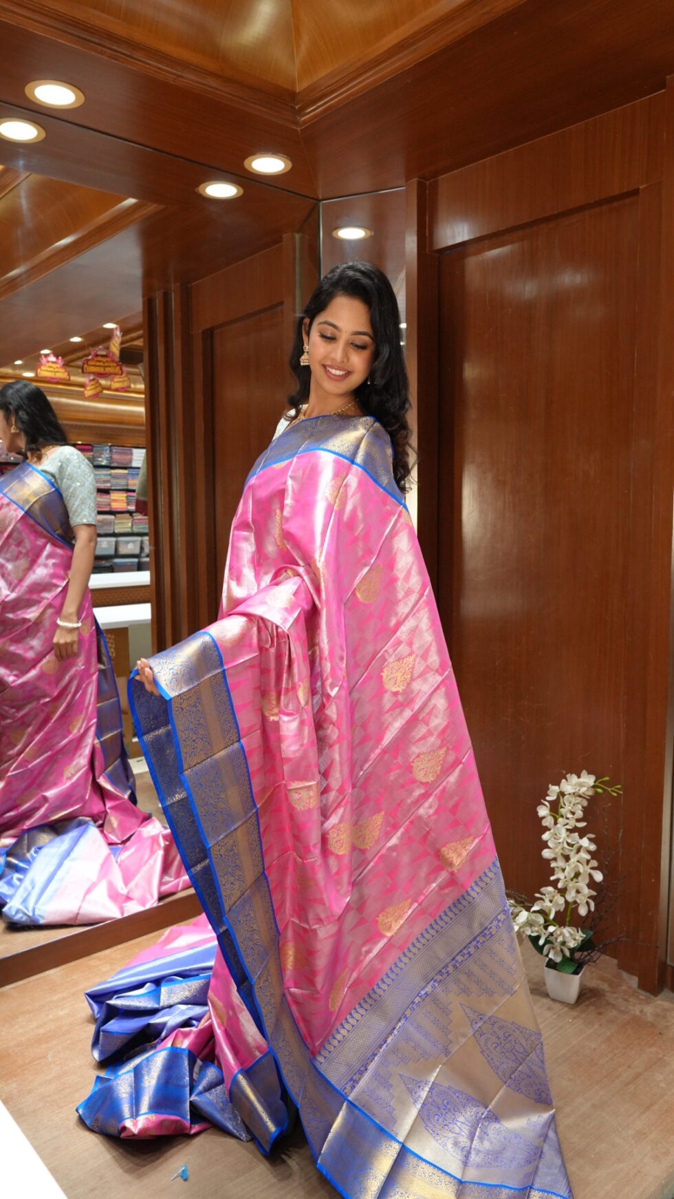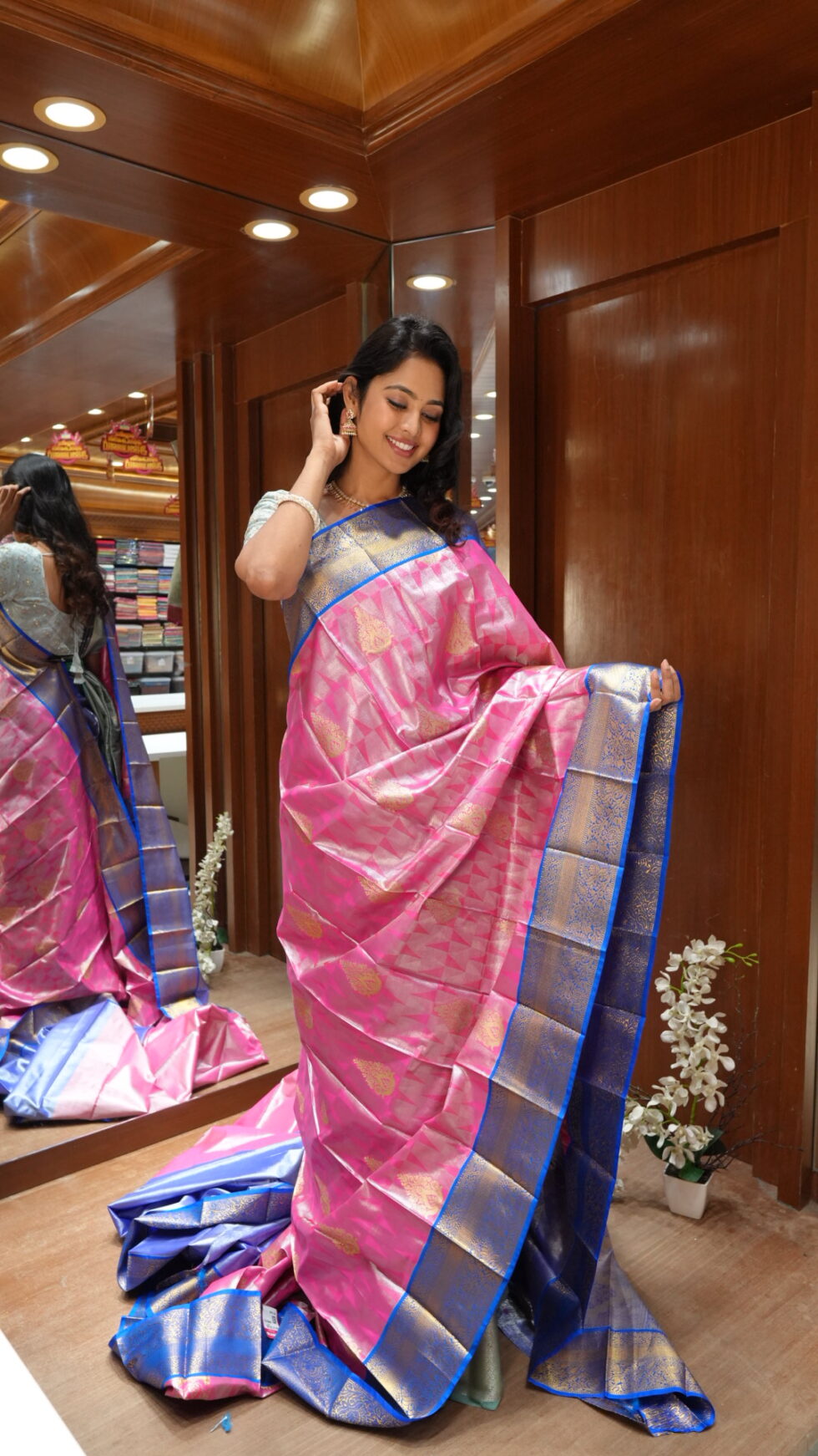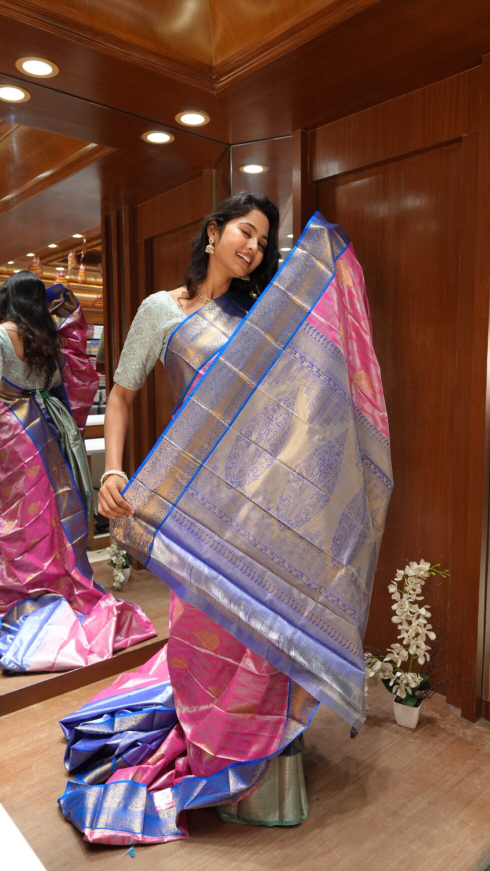 Mystique Teal: Dual-Tone Blue Silk Saree with Copper Zari