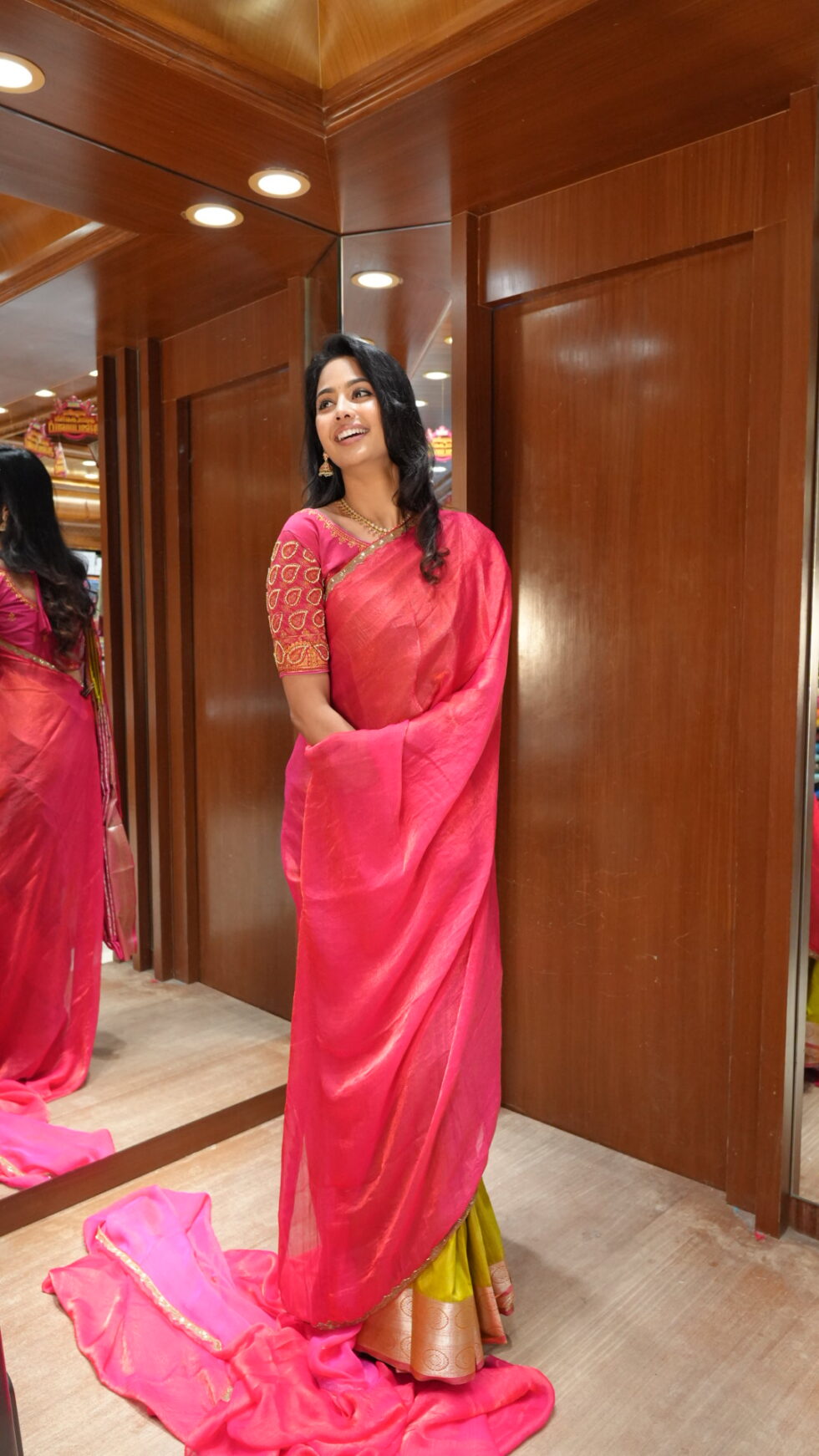 Radiant Rhapsody: Hot Pink Tissue Chiffon Saree