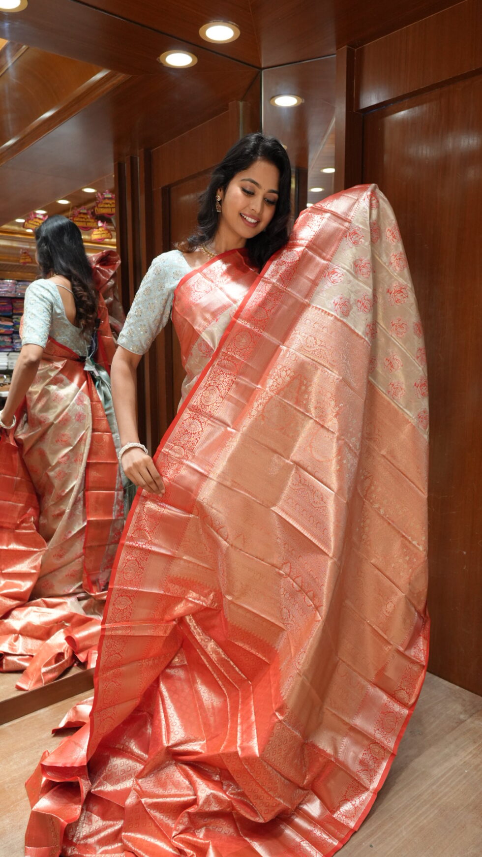 Ruby Shimmer: Dual-Tone Silk Saree with Gold Zari